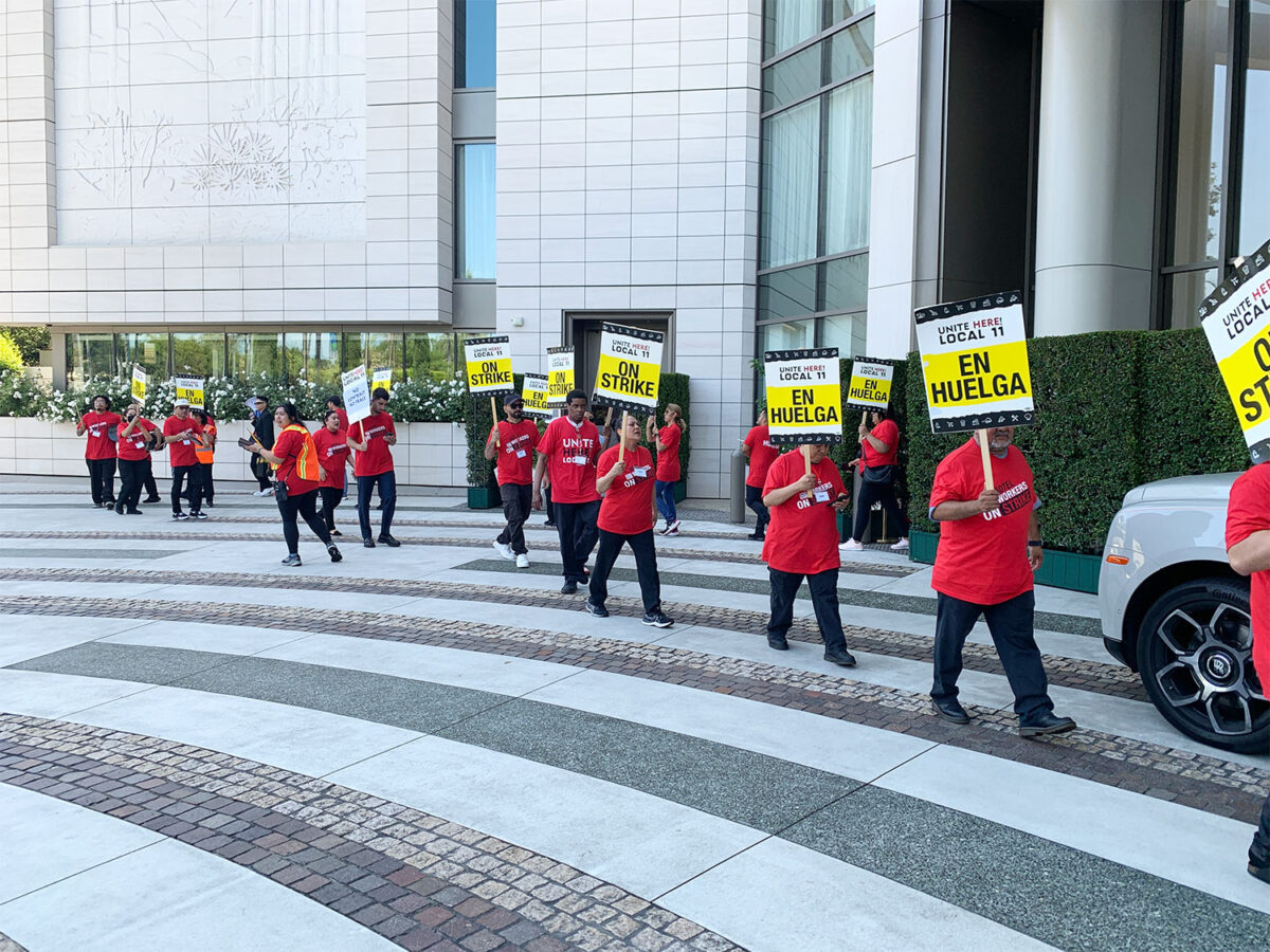 “This walkout was the first of many actions that may come this summer by workers at hotels across Southern California, and it is only one tool in our toolbox,” Unite Here Local 11 Co-President Kurt Petersen said. “We have put the industry on notice that the workers have suffered enough.”