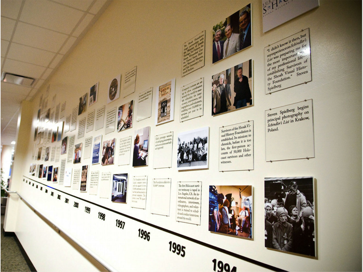 USC Shoah Foundation’s VHA contains more than 56,000 video testimonies of survivors and witnesses of genocide, crimes against humanity, and related persecution. It is the largest digital collection of its kind in the world. Currently encompassing nearly 120,000 hours of video testimony, nearly every testimony contains a complete personal history of life before, during, and after the interviewee’s firsthand experience with genocide. The Visual History Archive is digitized, fully searchable, and continuously updated to ensure the quality and integrity of the testimonies. This indexing allows students, scholars, researchers, and others around the world to retrieve entire testimonies or search for specific sections within testimonies through a set of 65,600 keywords, 1.99 million names, and 719,000 images.