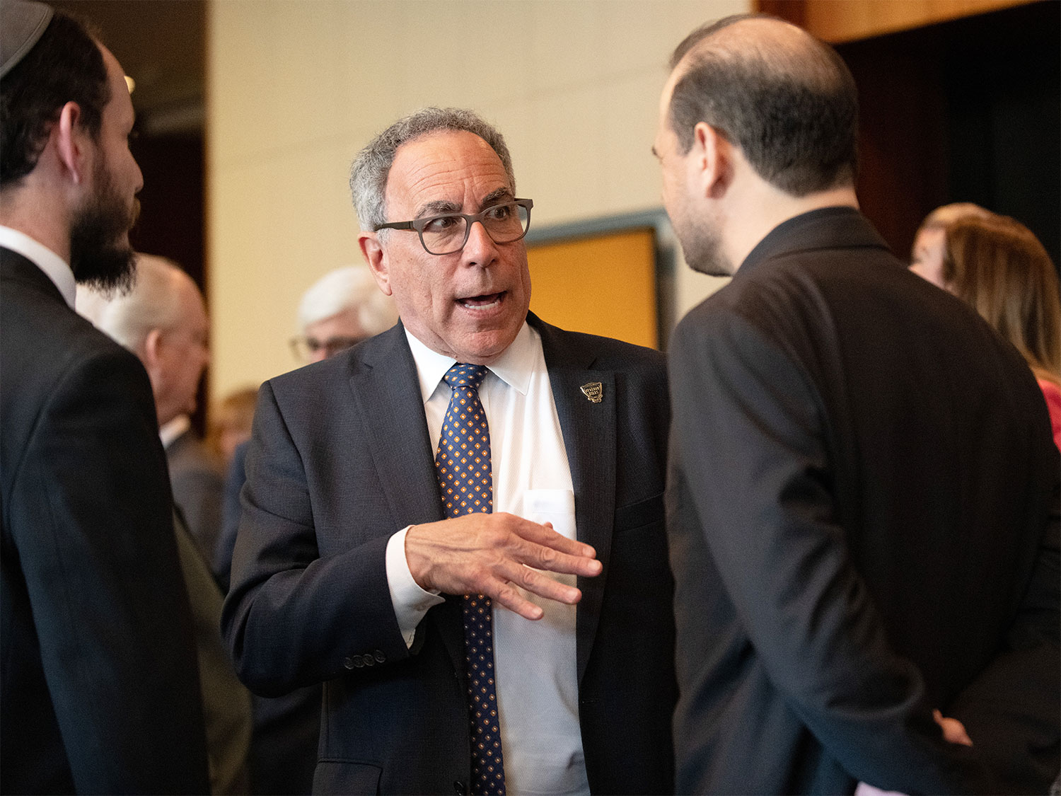 Mayor Lester Friedman chats with members of the community before he is sworn in.