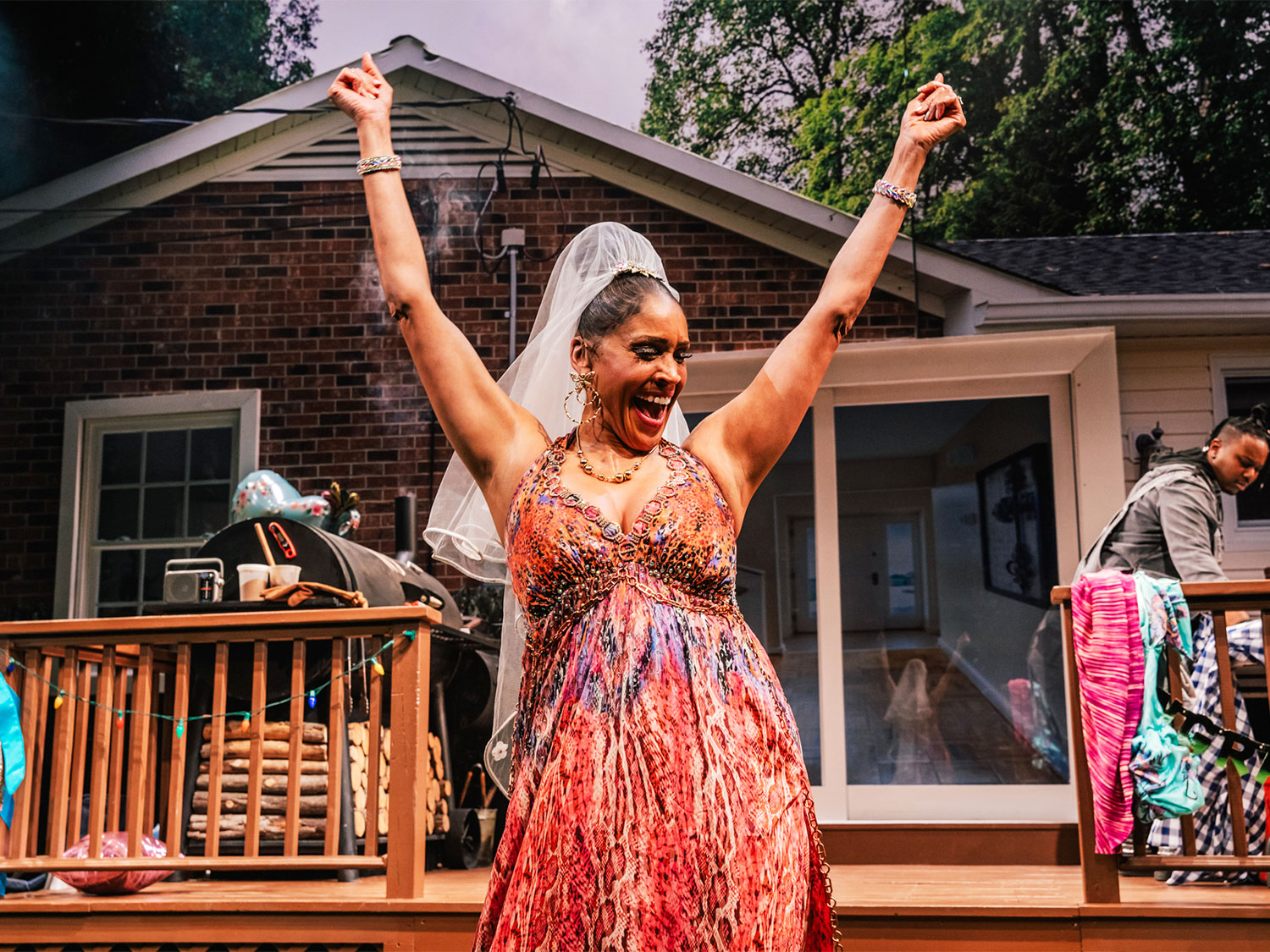 “Hamlet” was a bloodbath; “Fat Ham” is not. The ties to Shakespeare’s classic are knowing, irreverent and only in passing. On occasion, Juicy will recite a passage that fits appropriately but if Opal is Ophelia, she doesn’t die and her love interests lie elsewhere. She hates wearing a dress but likes those who do. Larry is the Laertes whose care and concern over his sister and Juicy disguises where his interests lie in agonizingly stoic style. In truth, she wants to wear his uniform and he’d like her dress. The similarities between Rev and Tedra to Claudius and Gertrude are definitely there, and Rabby in full “Sunday going to meeting” regalia is a hilarious Polonius who has no more clue as to who her children really are than Polonius’s grasp on reality in “Hamlet.” Tio, the comic relief in a play rife with it, is a would-be Horacio, having also seen the ghost—but he is an unreliable source because he’s almost always high on something.