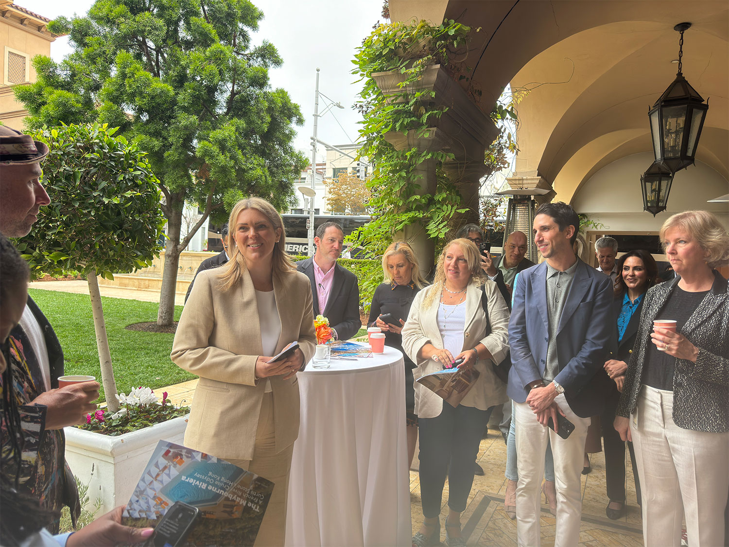 City officials, newsmakers and other invited guests gathered at The Maybourne Beverly Hills on May 3 for “Coffee with the Courier.” The event marked the launch of the inaugural Beverly Hills Courier Travel Magazine, a collaboration with Maybourne. Attendees mingled amidst the colorful spring setting of The Terrace while enjoying an elegant sweet and savory buffet hosted by the hotel. Beverly Hills Courier Travel Magazine becomes the fourth quarterly publication from the Courier, along with Summer and Holiday STYLE and Wine + Dine.
