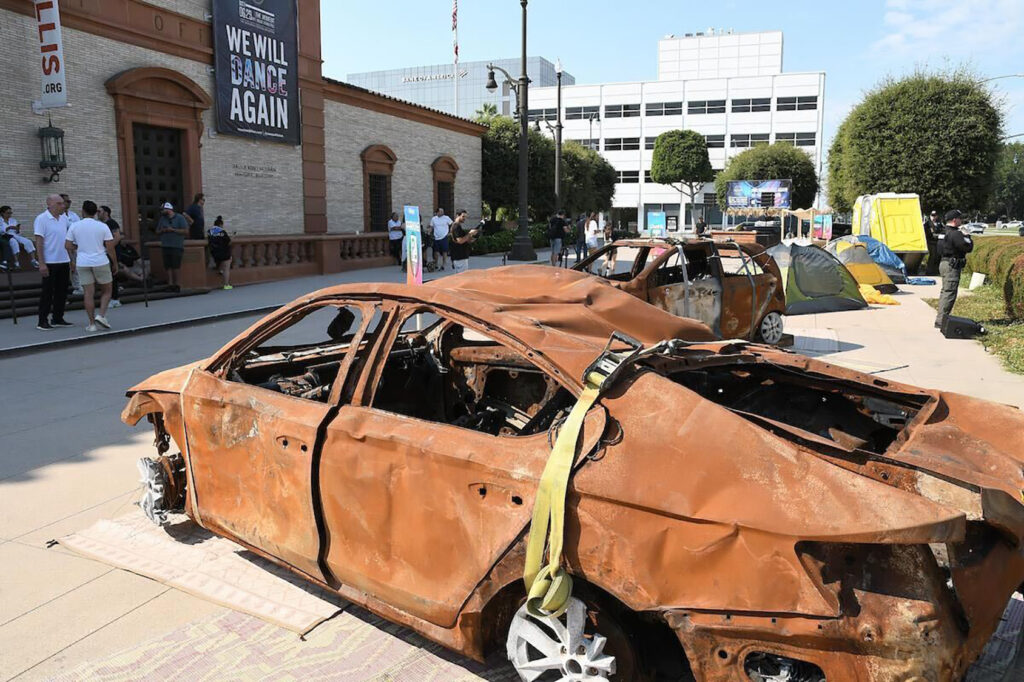 The exhibit at the Wallis Annenberg Center for the Performing Arts featured scorched cars and the victims’ belongings. Photo courtesy city of Beverly Hills